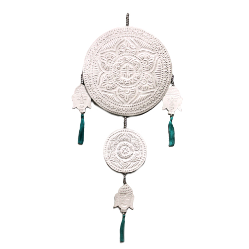 Bali Style Wall Decors in fashionable pastel colours and on trend shapes add a touch of Bali magic to any home. Beaten and hand painted aluminium has been used for generations to make offering boxes for use in temples. Now this same technique is used to make these enchanting aluminium mobiles. Hand made by a mother and daughter business, the designs complete with beads and tassels details.