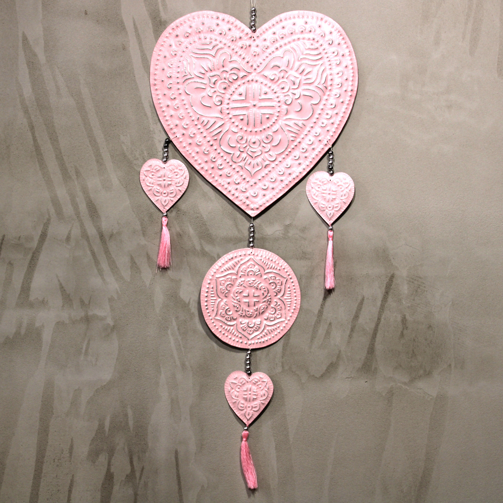 exactly as described // reviewed product: Aluminium Mobile - Hearts Wooden Wall Decoration Hangings. Unique Craftsmanship from natural materials. Wall Art Decor in Boho style. Housewarming party gift.