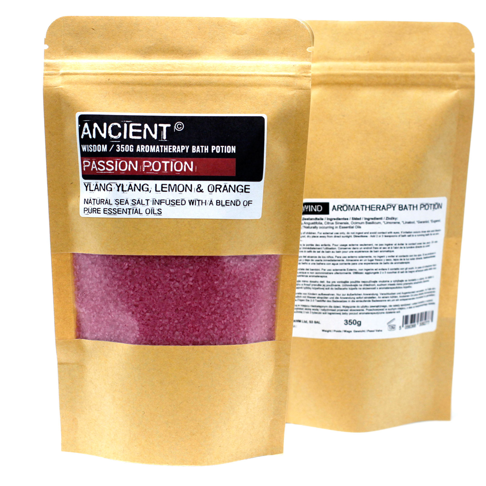 Aromatherapy Bath Potion in Kraft Bag - Passion would also make for a great as a giveaway option for someone you care about. Passion Ylang Ylang, Lemon and Orange This Aromatherapy Bath Potion is made with an artful blend of Pure Essential Oils and sea salt. They are the perfect gift to give to your loved ones or to treat yourself. This Bath Potion will relax your body, energise and clear your mind. Directions: Add 2 or 3 teaspoons of bath salt to a running bath for an aromatherapy bath experience. We have a variety of products in this this