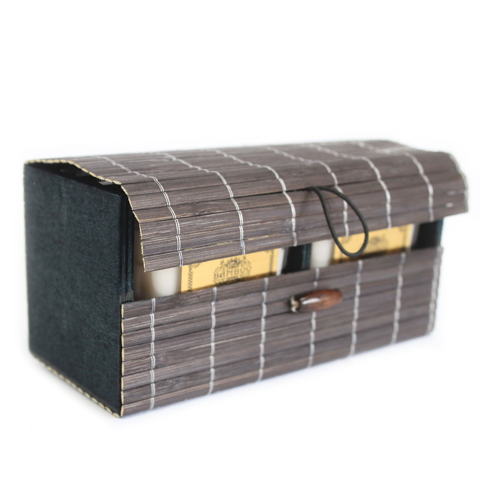 Double Box Slatted Bamboo is an excellent choice for a present to give to someone important in your life. Handcrafted Bamboo Boxes were designed to particularly fit our scented candle jars, but they are also suitable for many others products too. These bamboo boxes are suitable for one, two and three candles, perfect for gifting to anyone special. They are lightweight boxes, easy to open and close, very practical and functional, not to mention very elegant too. Add to your shopping cart now Our this