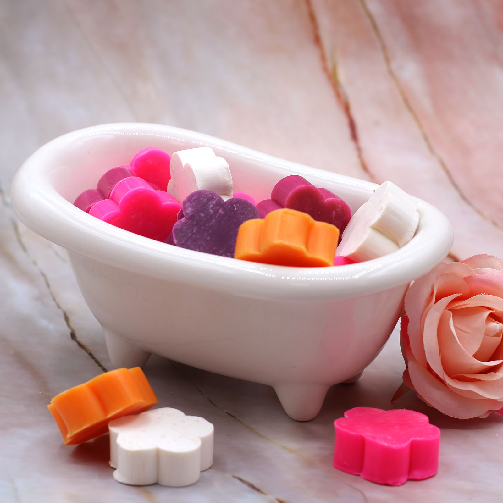 If you're looking for a wonderful present to give to a loved one, Flower Guest Soaps - Calendula would be an excellent choice. little flower shaped guest soaps will make a wonderful addition to your bathroom. They are colourful and smell great! Each soap weights approx. 25 grams each and measure approx. 4 cm. Our Guest Soaps are also Sls and Paraben free. Our array of