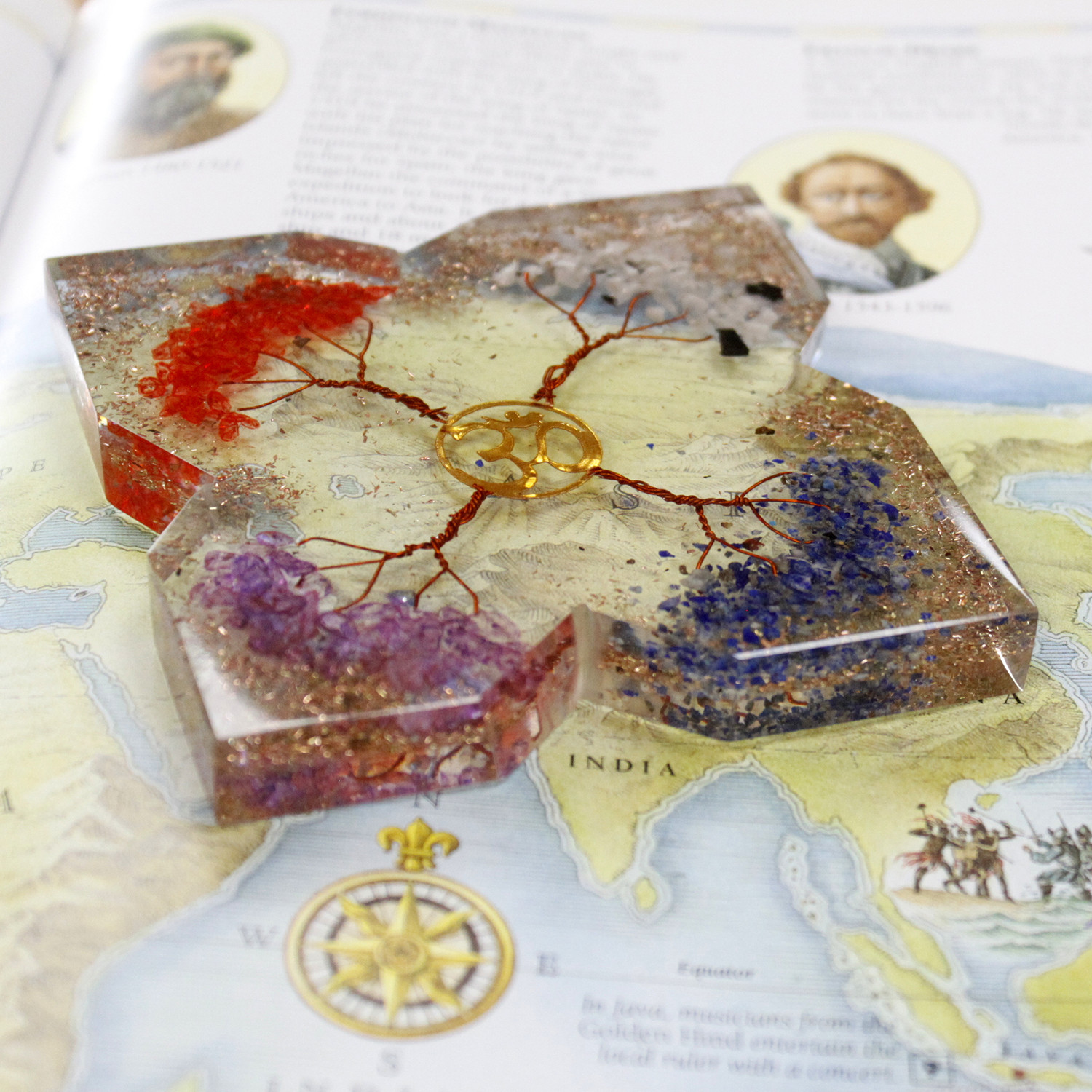 Orgonite Desk Power Packs are made with Gemstone chips, copper, metal filings and have esoteric objects inside - they are truly mystic paperweights or just delightful decorations. A perfect gift for any office or desk bound worker.